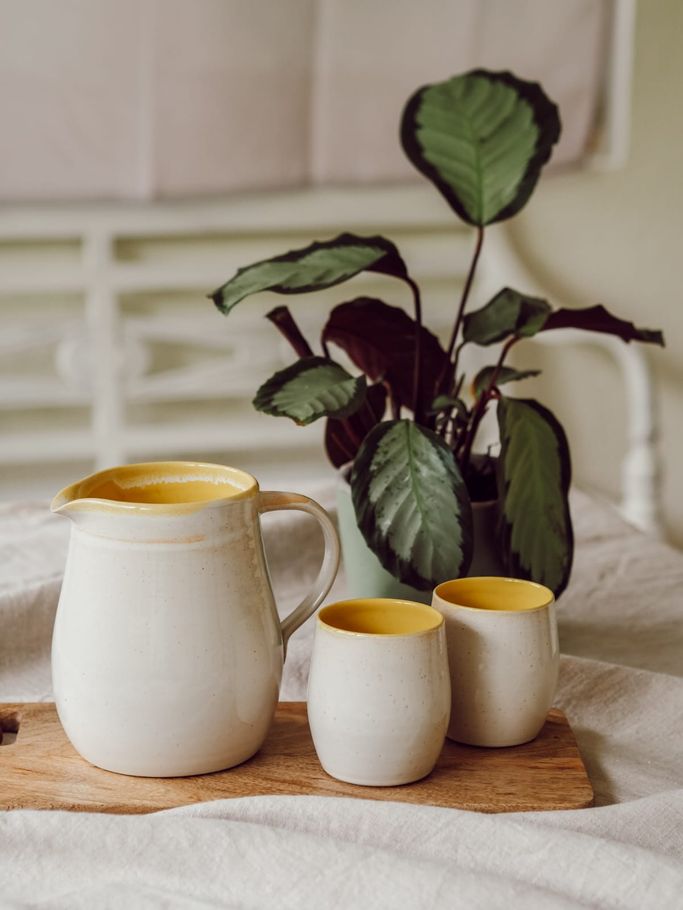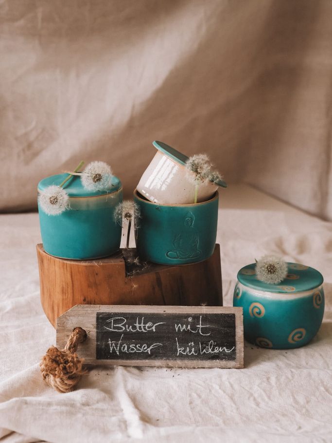 Komm rein und schau Dich um. Du kannst handgetöpfertes Geschirr mit unterschiedlichen Farben und Dekoren erwerben. Teilweise an der Drehscheibe gefertigt, meist sehr gleichmäßig und dünn oder von Hand geformt, was etwas ursprünglicher wirkt und auch eine schöne Lebendigkeit und Kreativität in sich trägt.